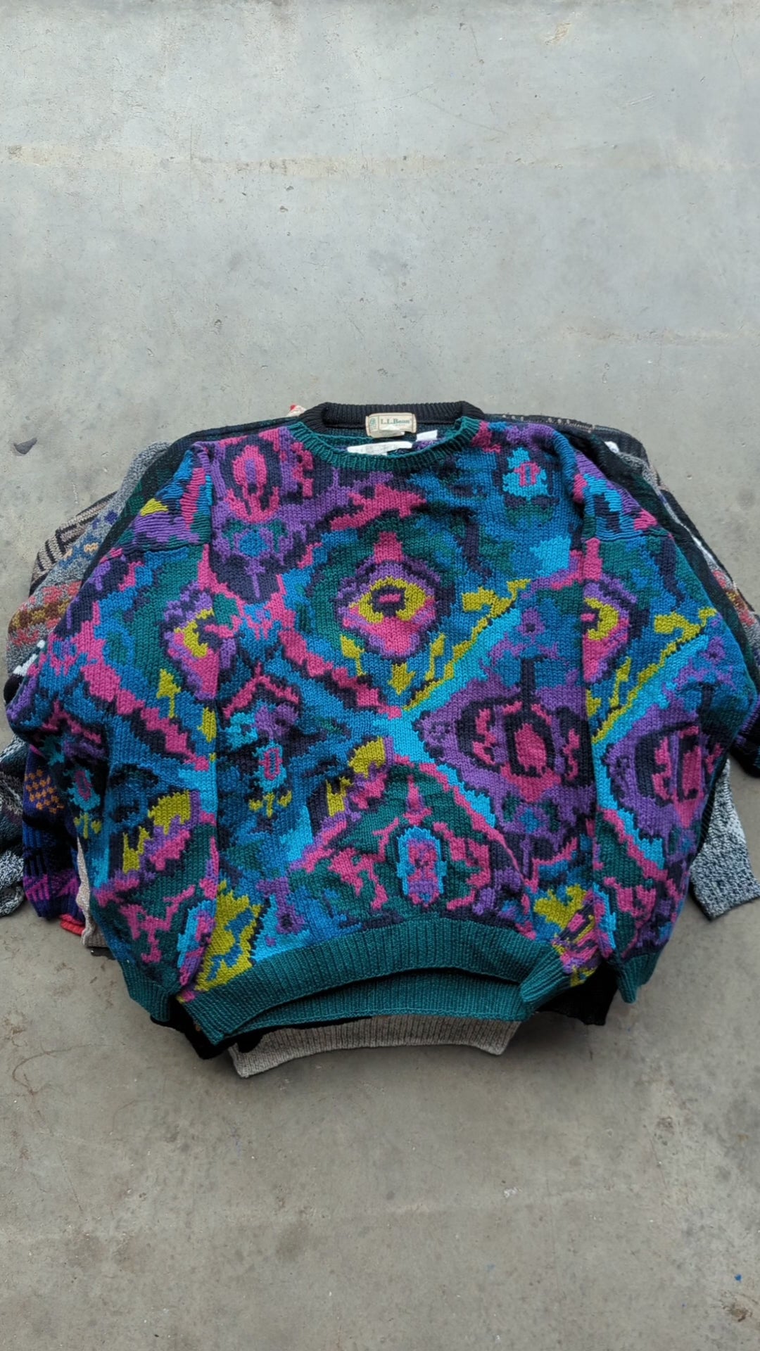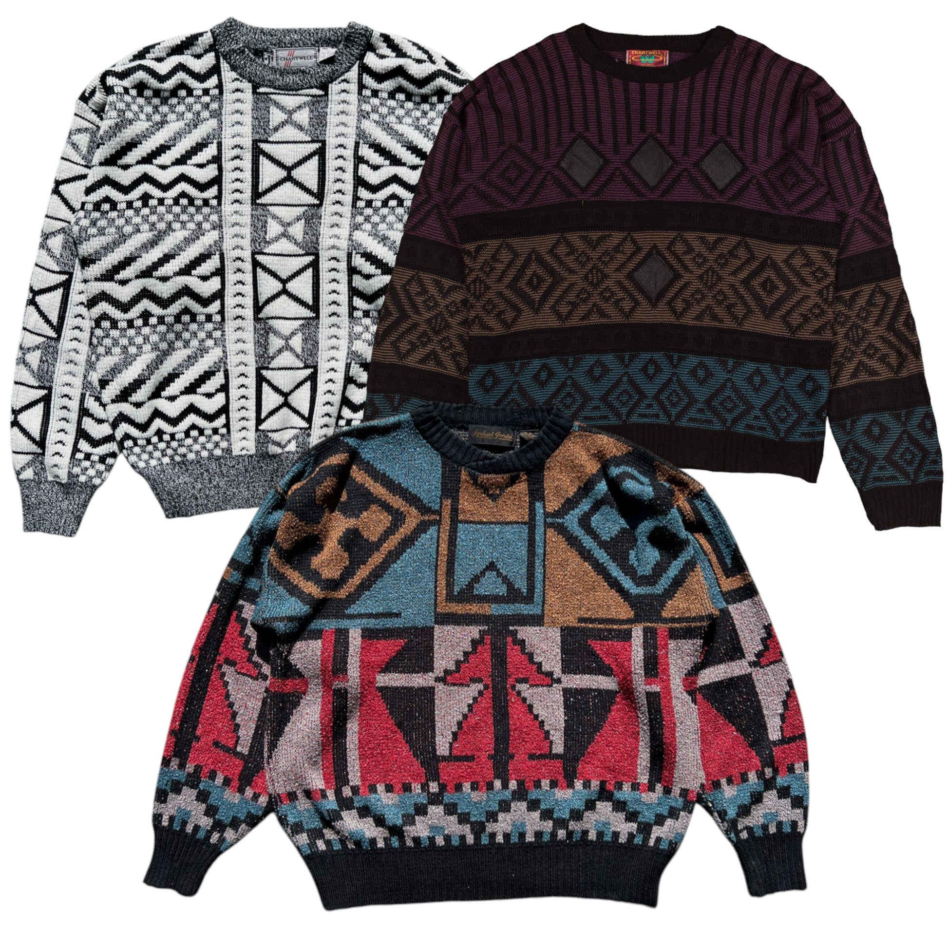 Quality crazy pattern knitwear, both colourful and geometric, plenty of vintage in the mix and quality USA pieces. A great grade!