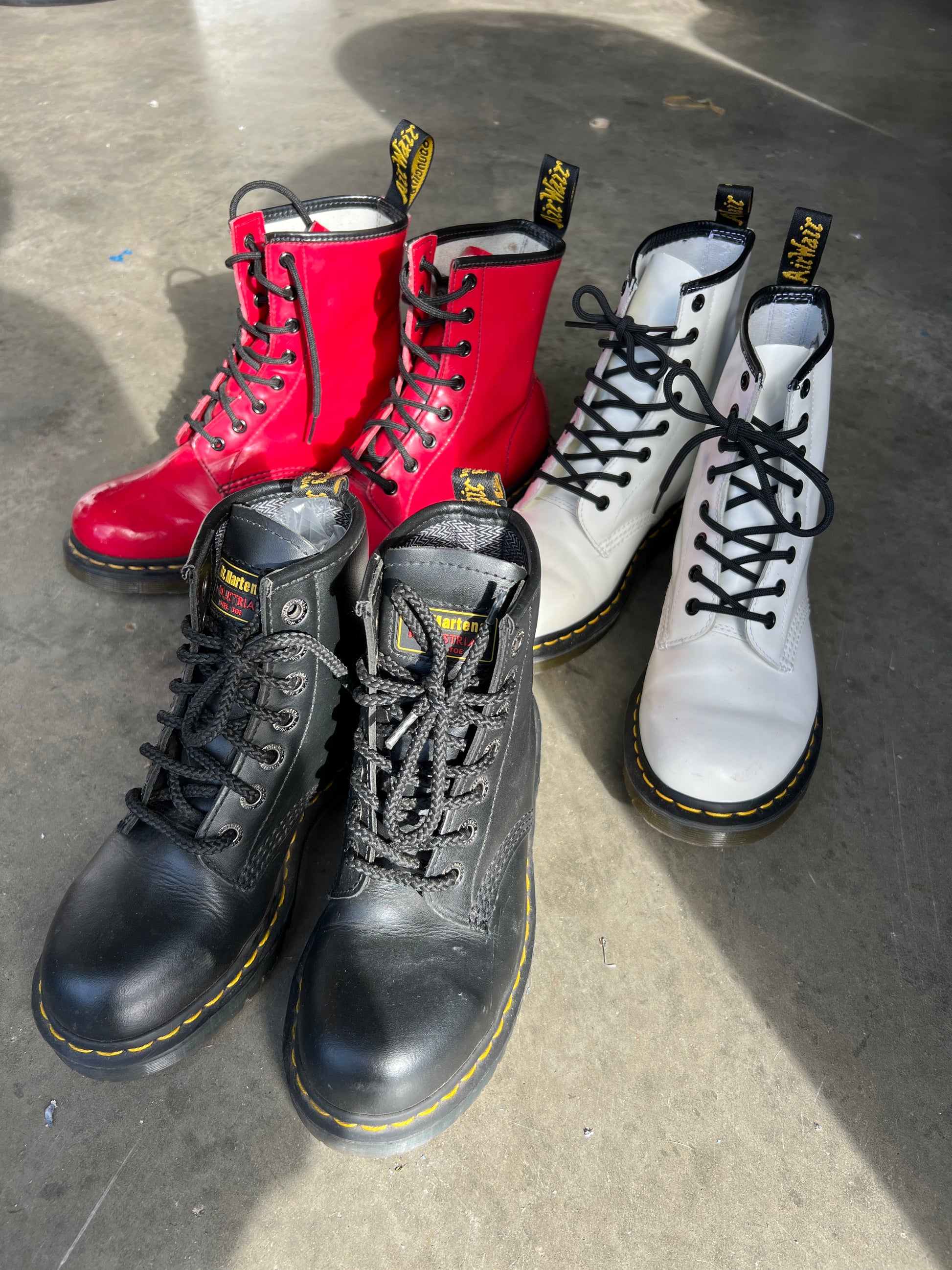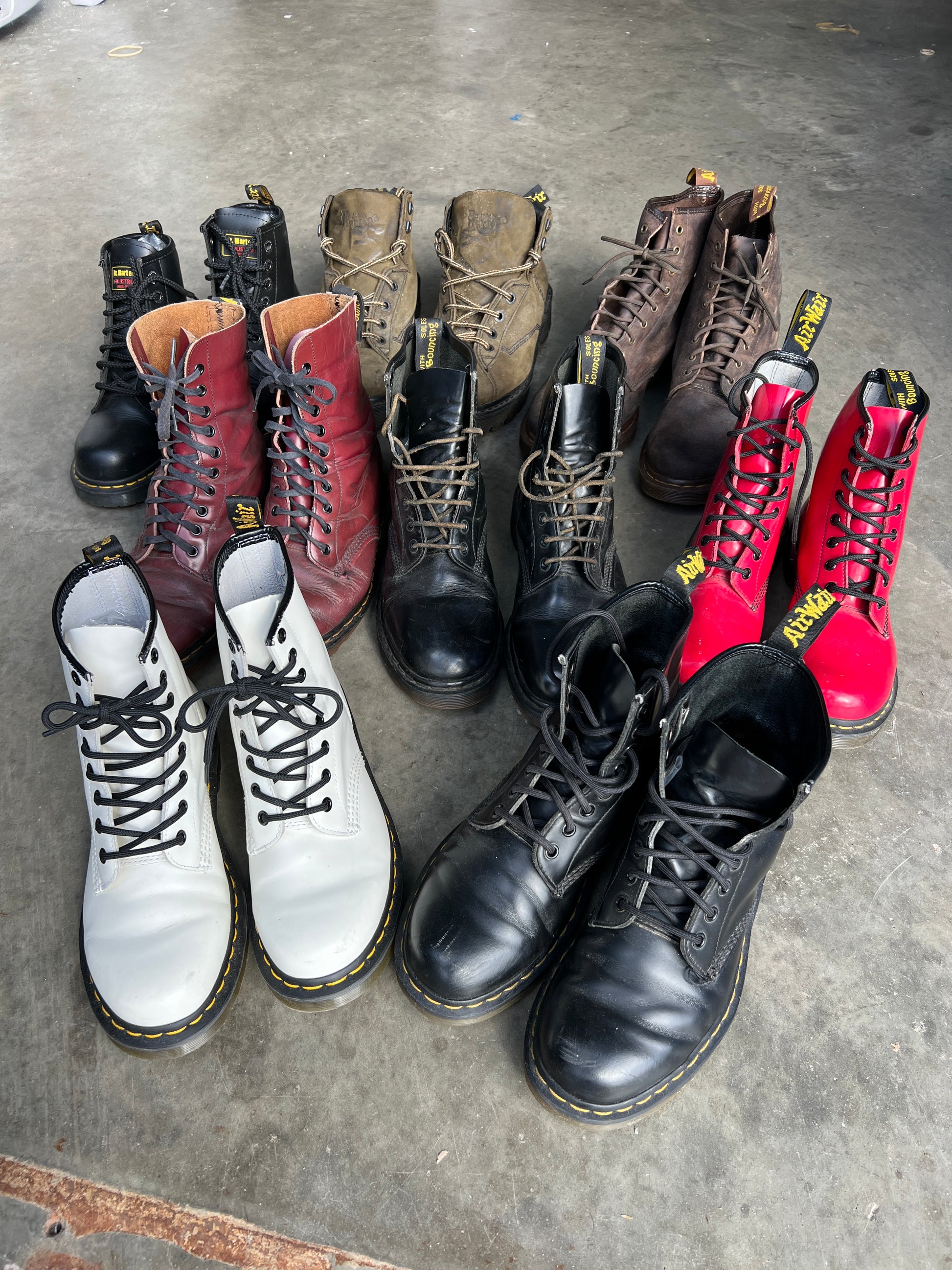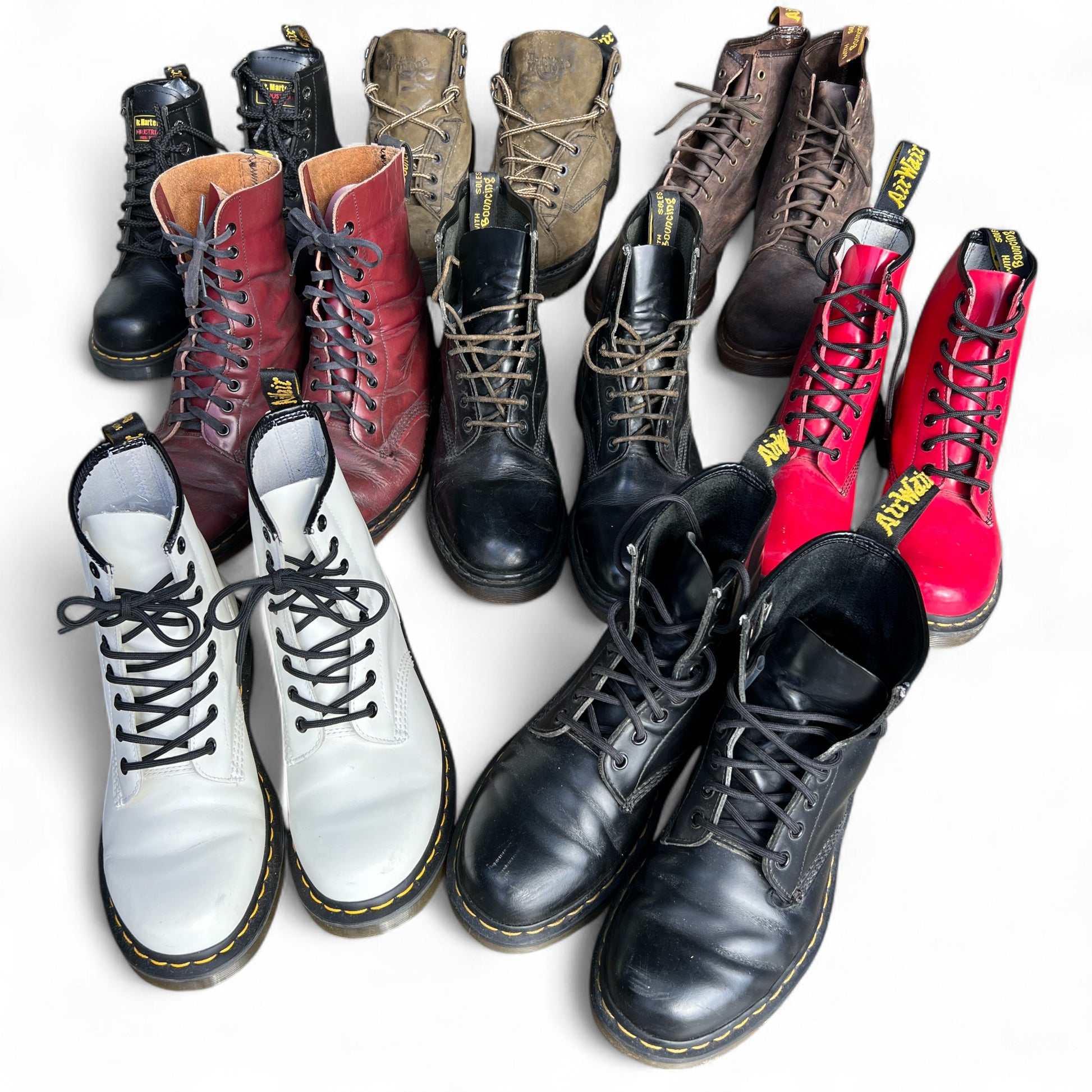 A mix of men's and women's Dr. Martens shoes and boots. All genuine and handpicked for quality.