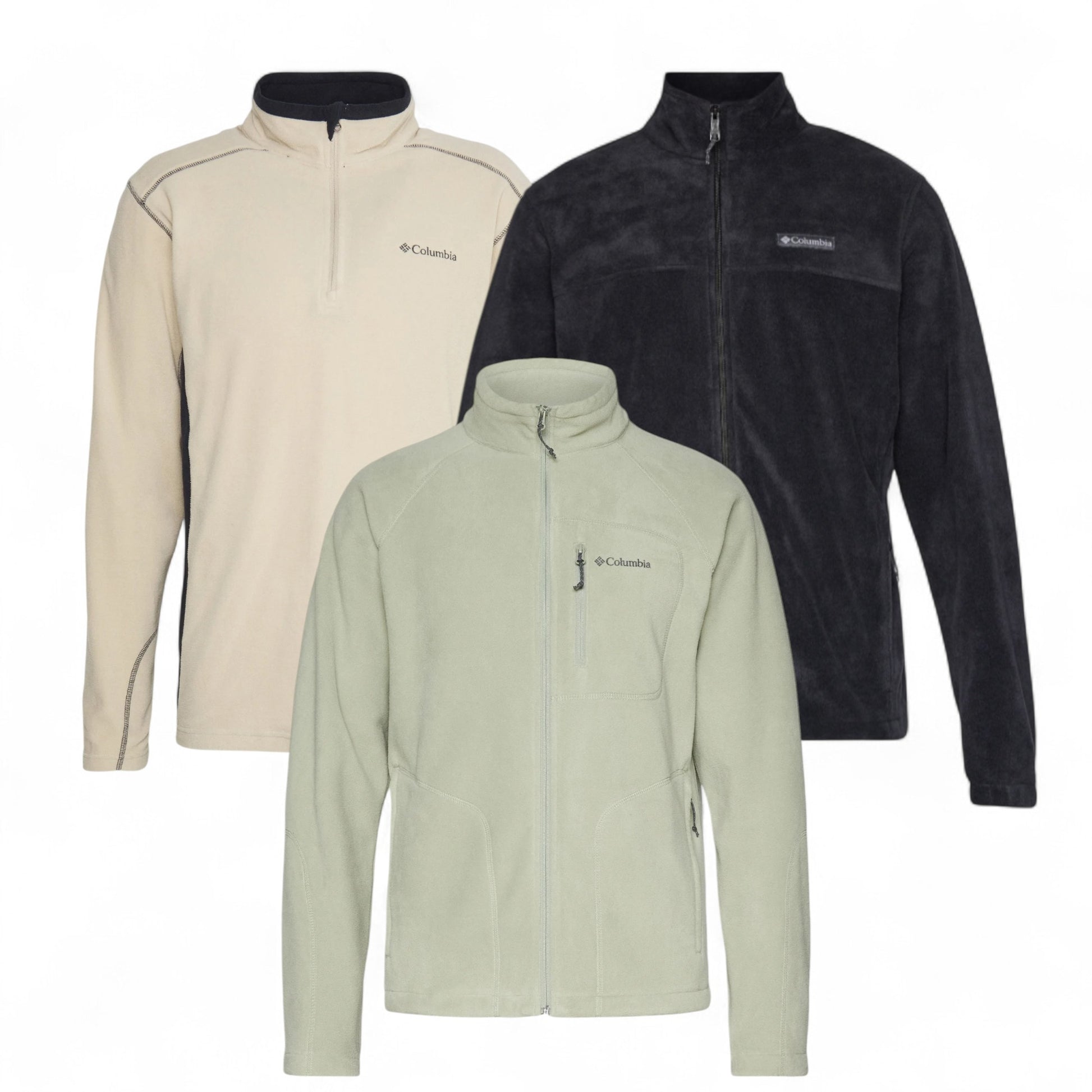 Men's Columbia fleece jackets in various styles and colours, will include brighter and more muted colours
