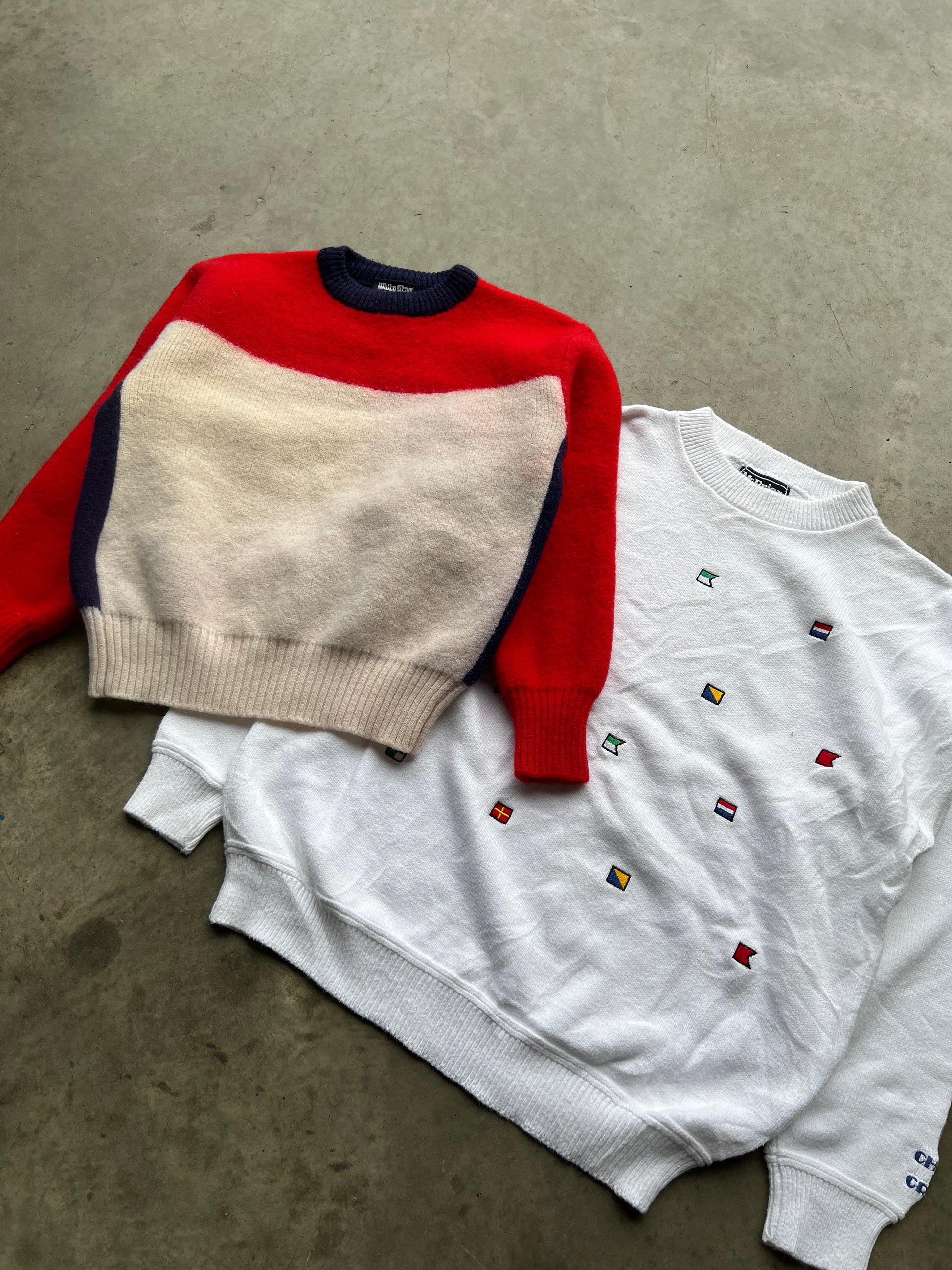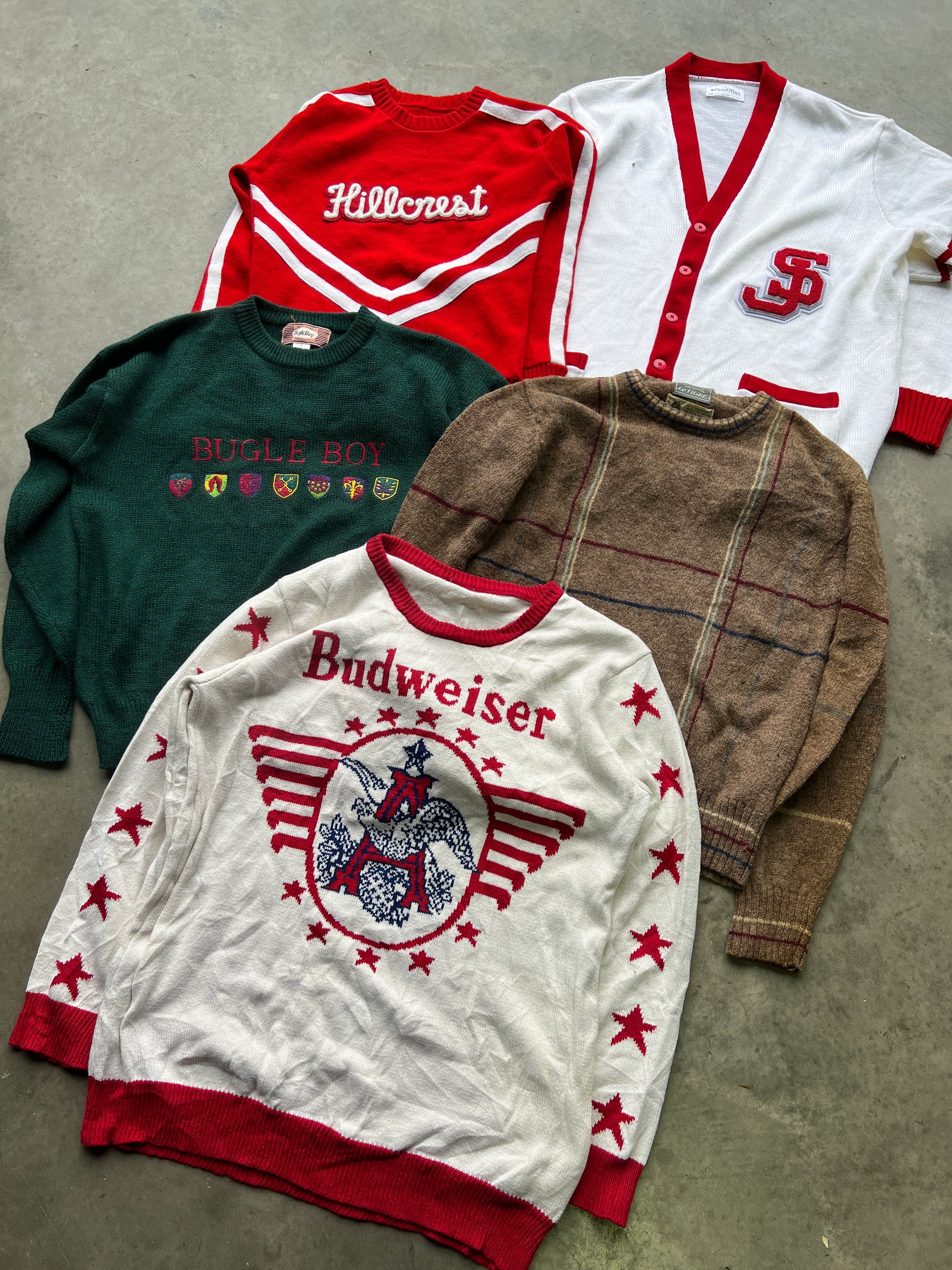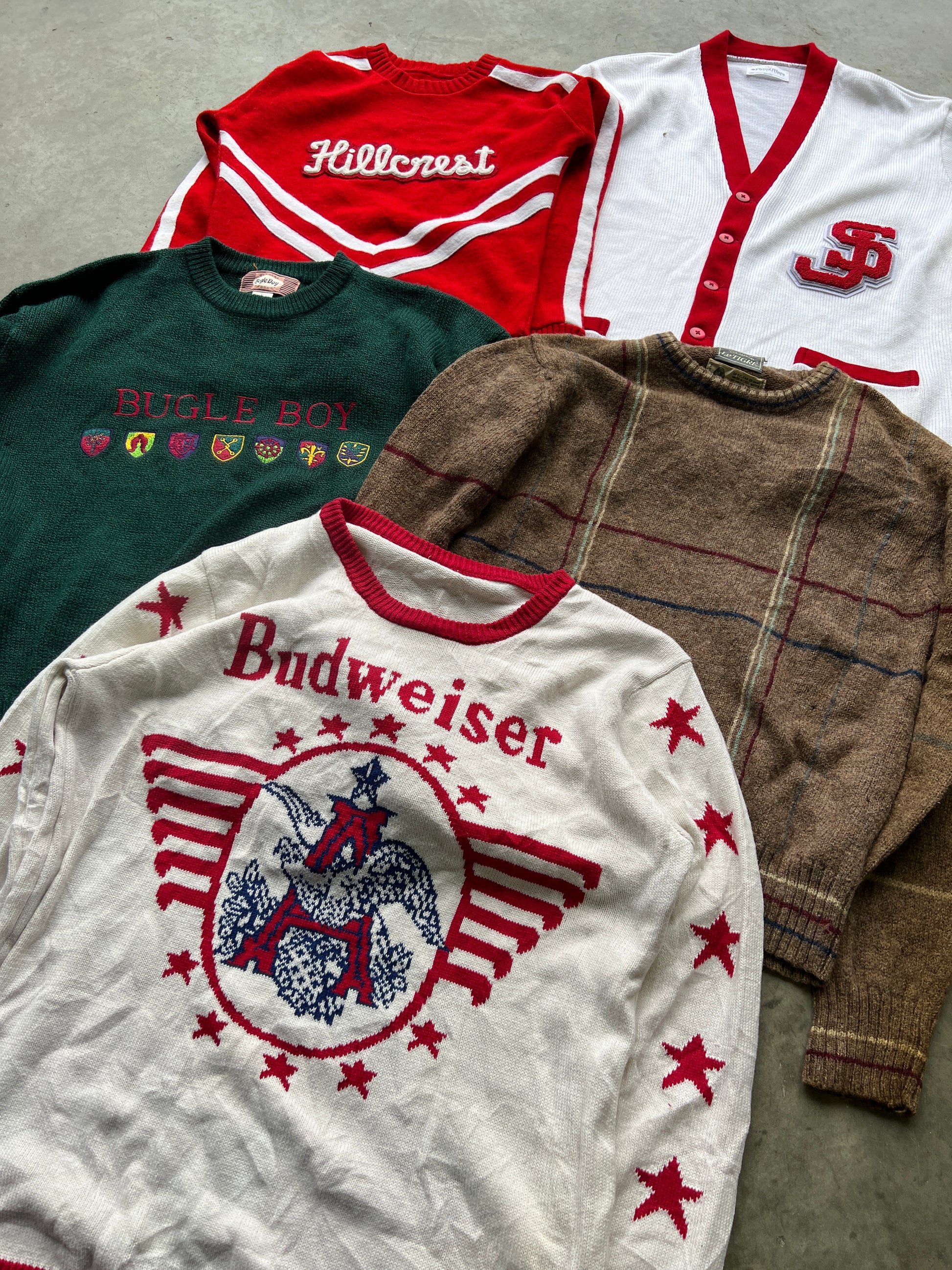 All True Vintage knitwear pieces. Total mix of brands/patterns/colours but all older/true vintage. 50s-90s.