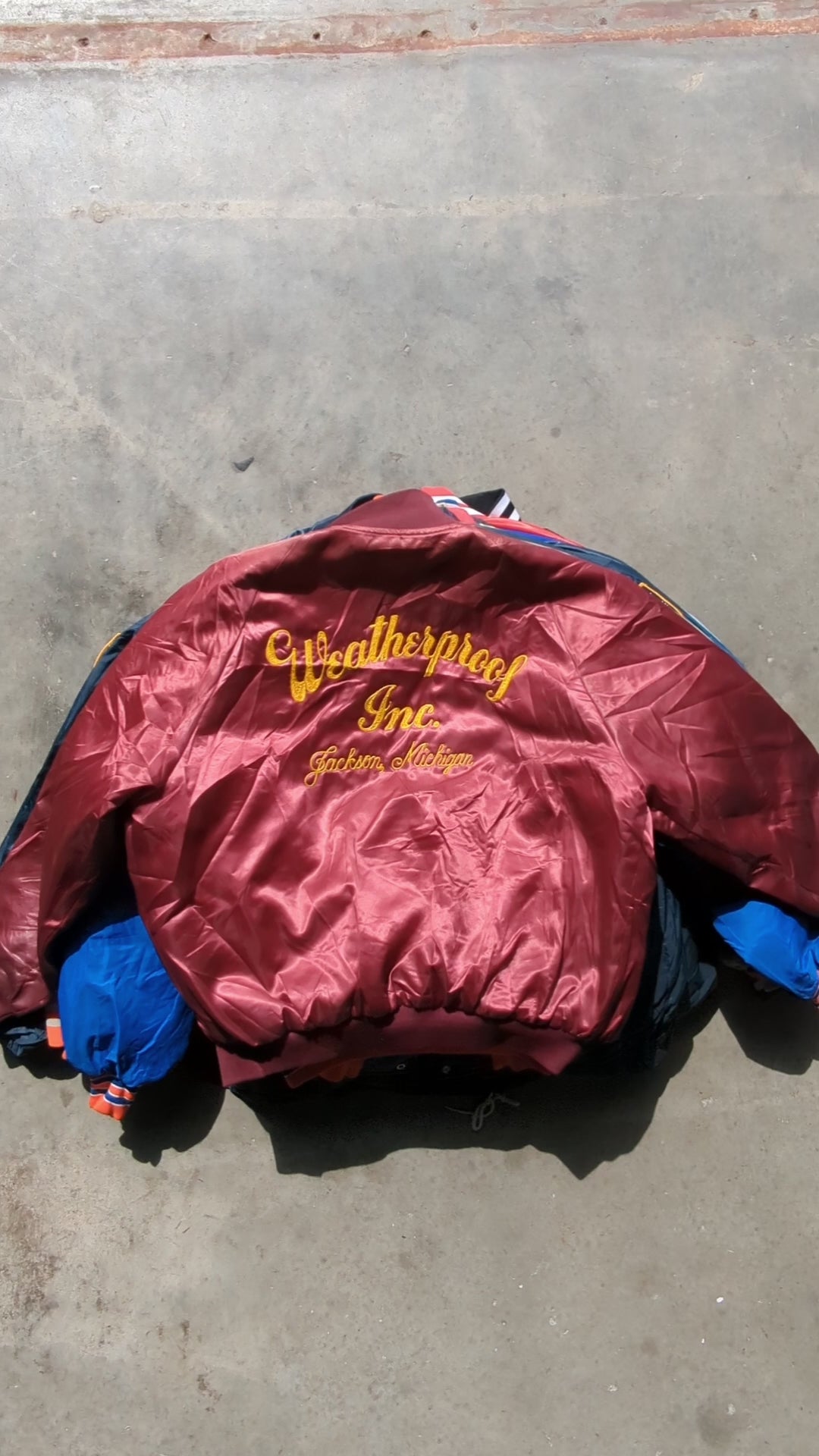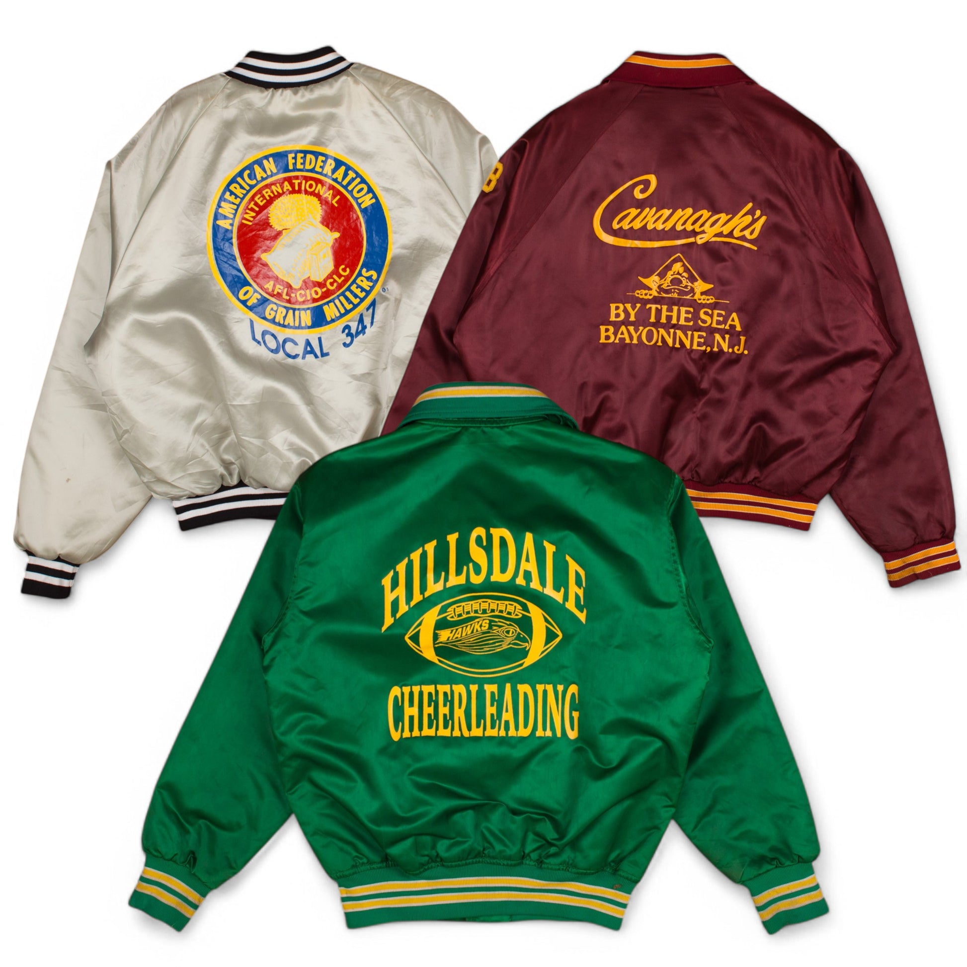 A mix of printed and blank satin bomber and coach jackets. Very high percentage vintage, great quality.