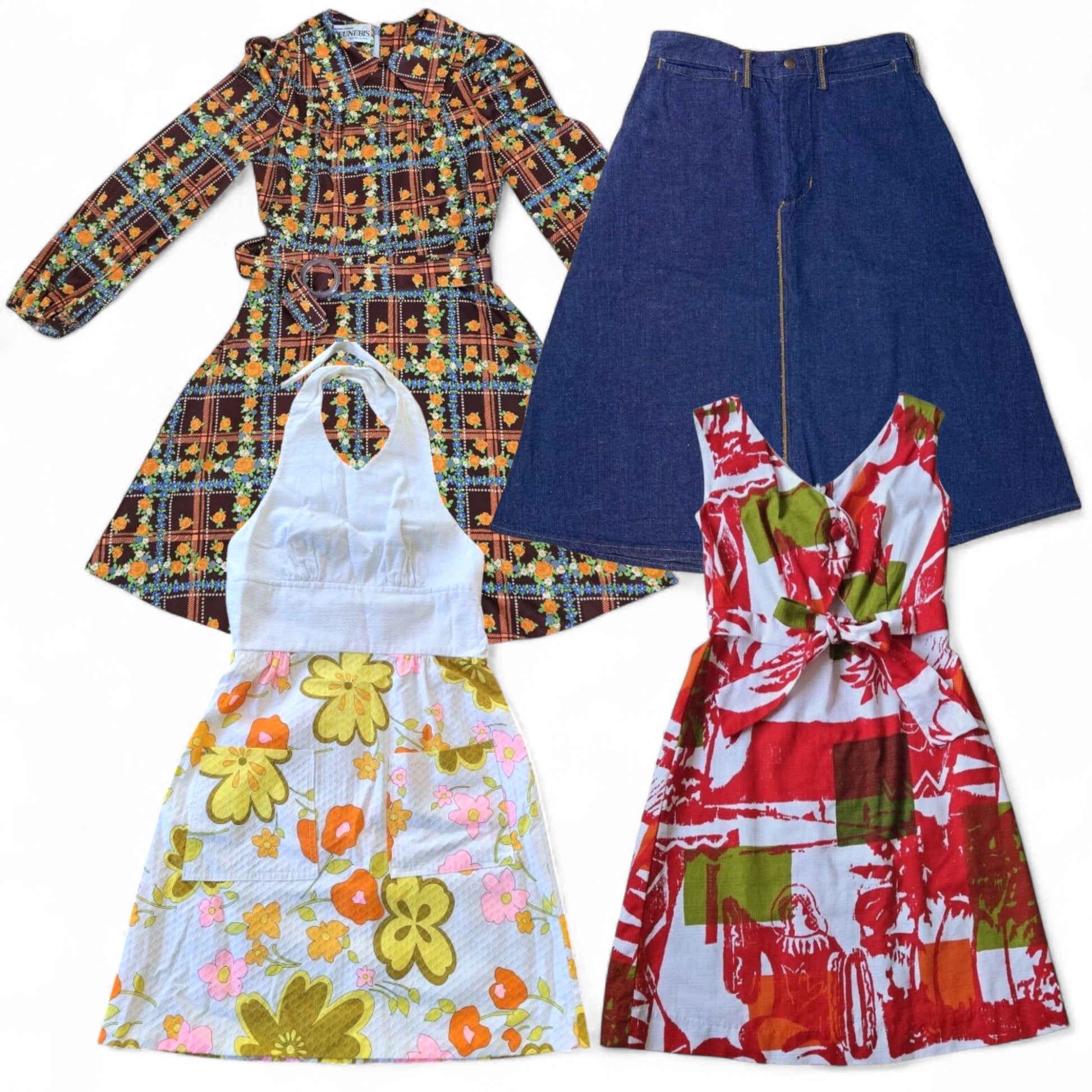 Mixed True Vintage skirts and dresses. Mix of skirts and dresses 50s-90s.
