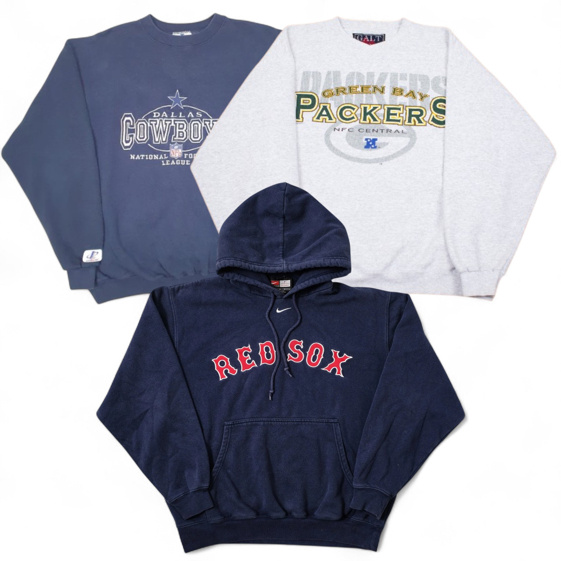 Vintage Pro Sport sweatshirts only. Only pro sport - no college etc. Mix is 50/50 hoods and sweatshirts.